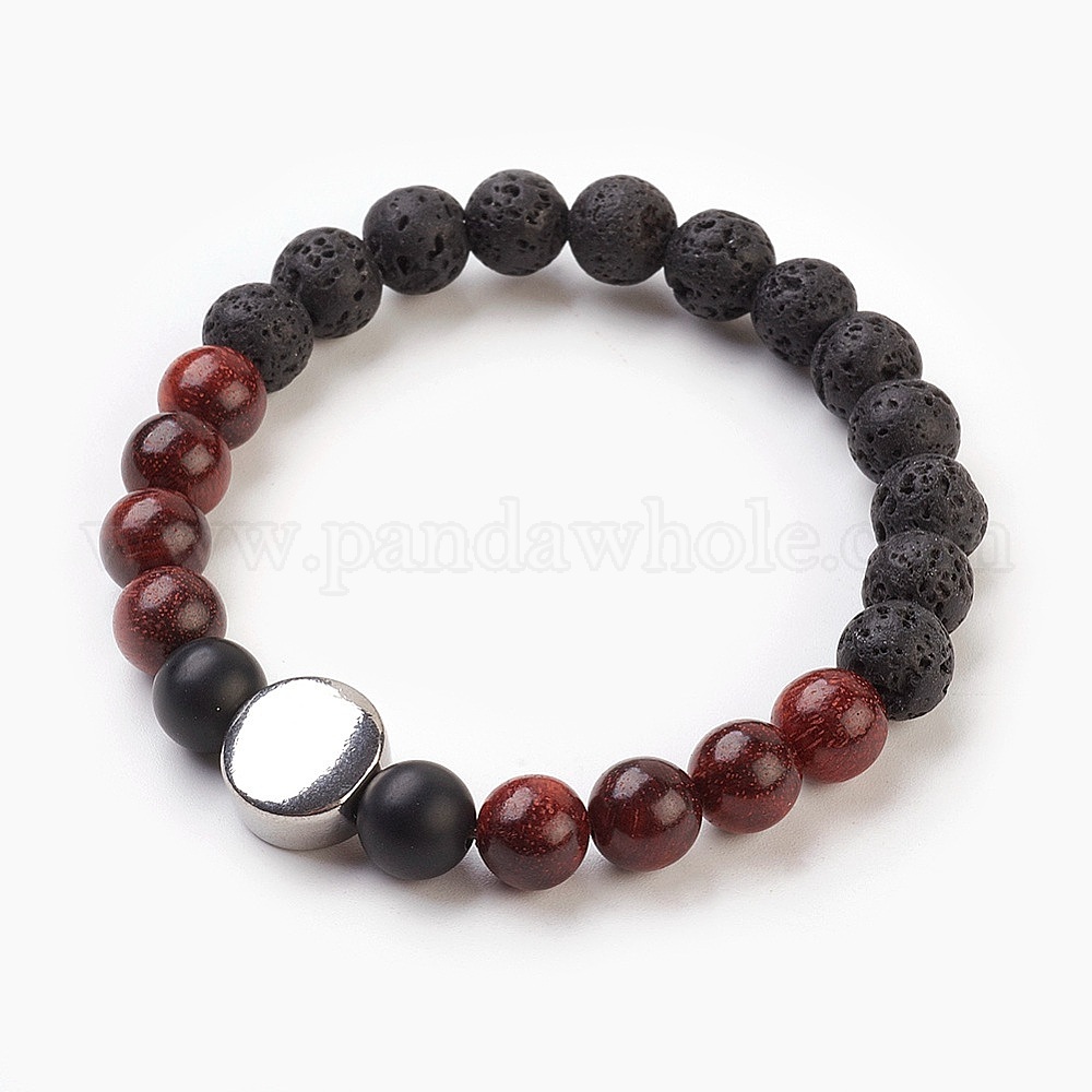 Природных драгоценных камней браслеты простирания, с 304 из нержавеющей стали бусы, плоско-круглые