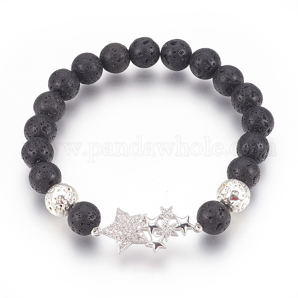 Стрейч браслеты, с долговечным гальваническим покрытием из натуральной лавы, натуральная лава и латунные бусины из фианита, звезда