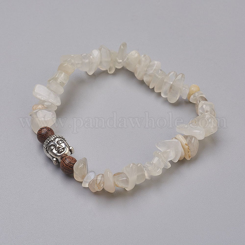 Браслеты из смешанного драгоценного камня и бисера, со сплавочной фурнитурой, голова Будды и чип