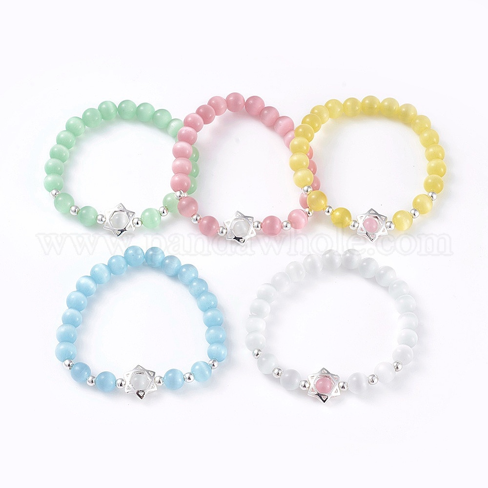 Кошачий глаз с круглыми бусинами, с фурнитурой из цинкового сплава, для евреев, звезда Давида