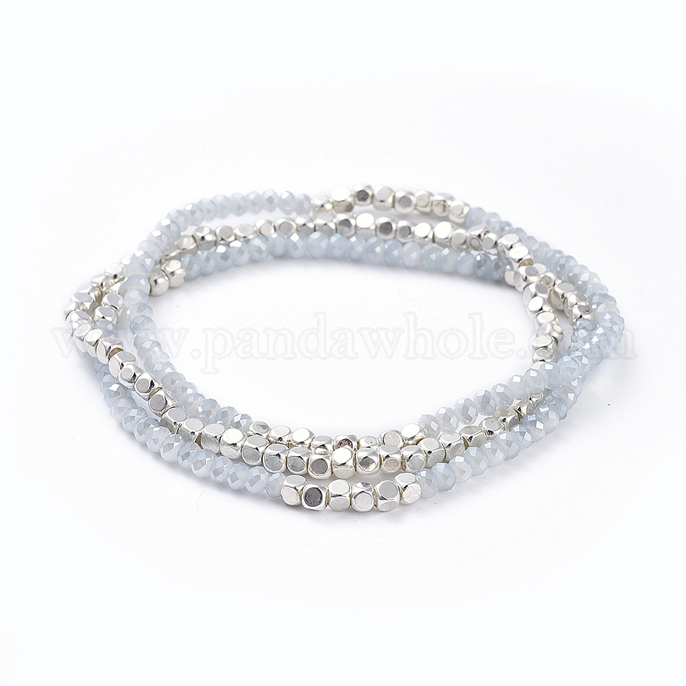 Наборы браслетов из гальванического стекла, 3strand / комплект, с кубиками из латуни