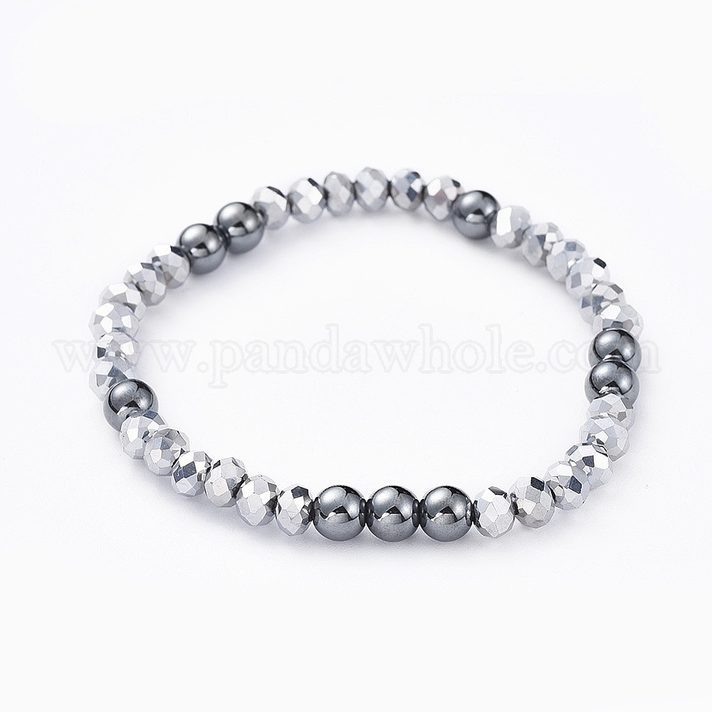 Граненые Rondelle гальванического стекла стрейч-браслеты, с круглыми драгоценный камень бисером