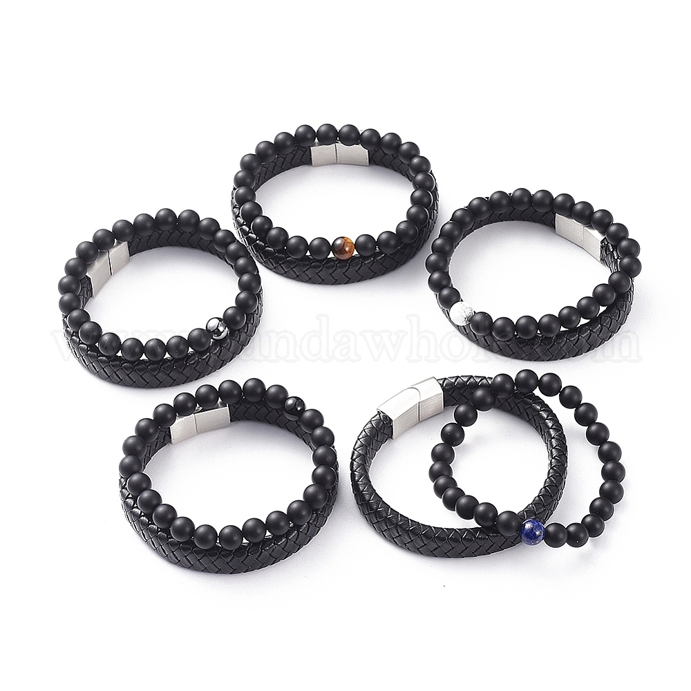 Браслеты из эластичного браслета и браслеты из кожи, штабелируемые браслеты, бусы из драгоценных камней и натурального агата, 304 магнитные застежки из нержавеющей стали и картонная коробка