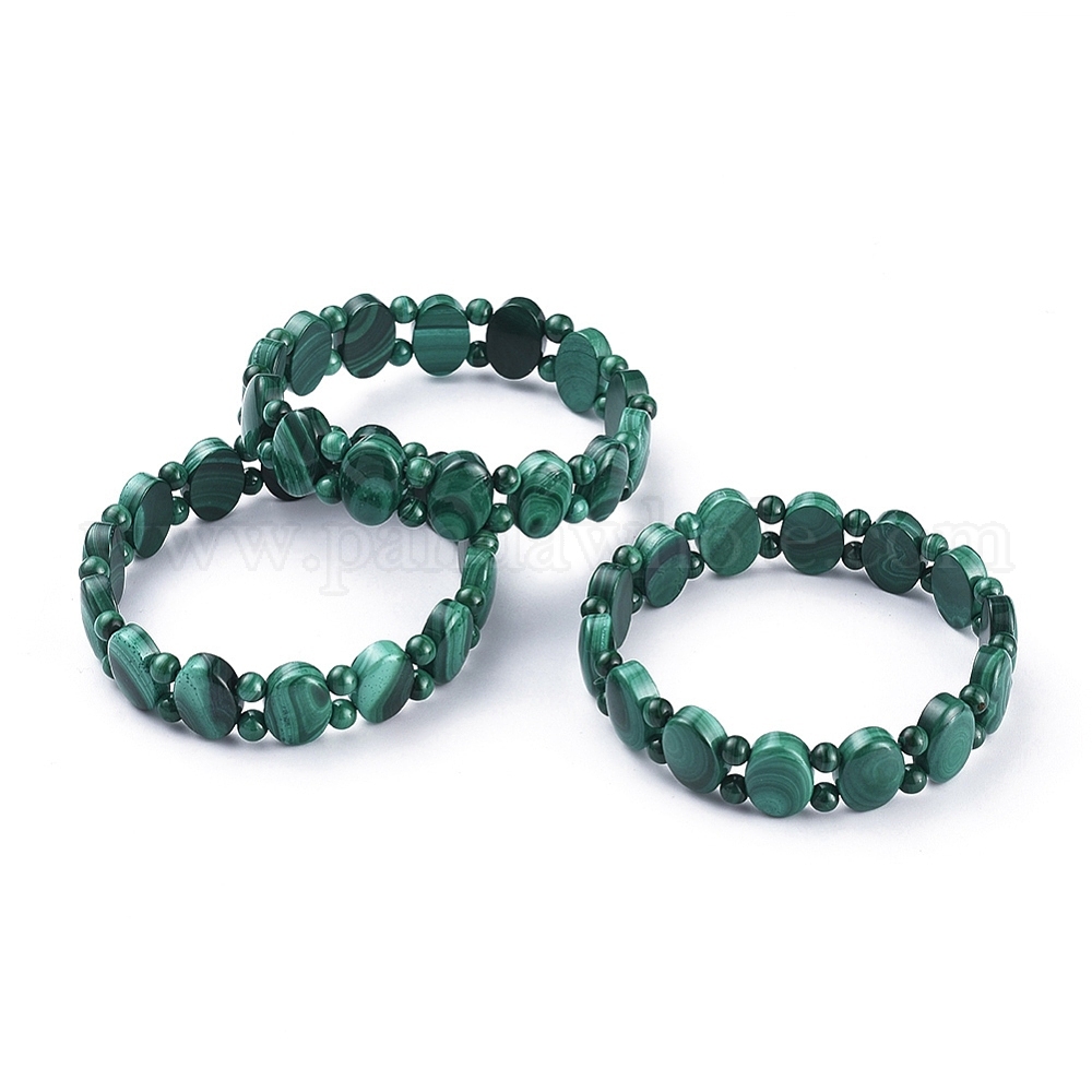 Натуральные малахитовые стрейч-браслеты, прямоугольные, круглые
