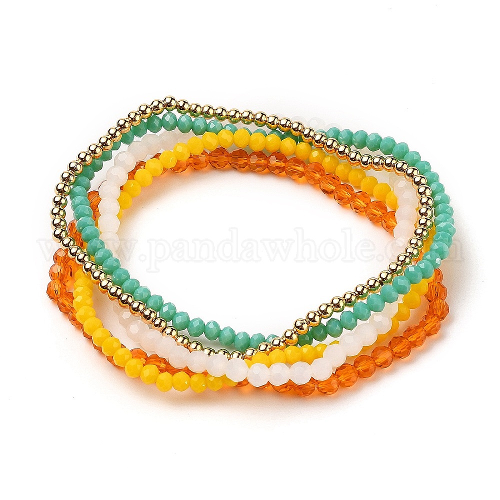 Наборы стрейч браслеты, штабелируемые браслеты, с настоящими 18 позолоченными латунными бусинами и стеклянными бусинами., круглые и круглые