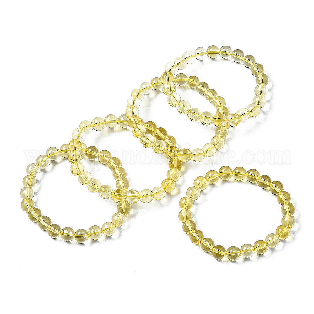 Эластичные браслеты с синтетическим цитрином и бусинами, круглые