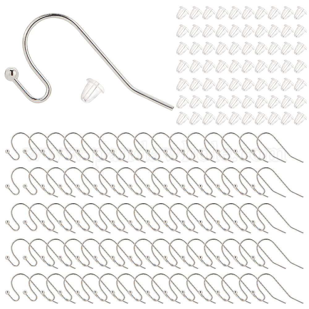 • Серебро 200 шт латунные серьги крючки, провод уха, без кадмия, без никеля и без свинца, с 300 пластиковыми ушными гайками, серебряные, серьги крючки: 22x11x0.75мм, 20 датчик