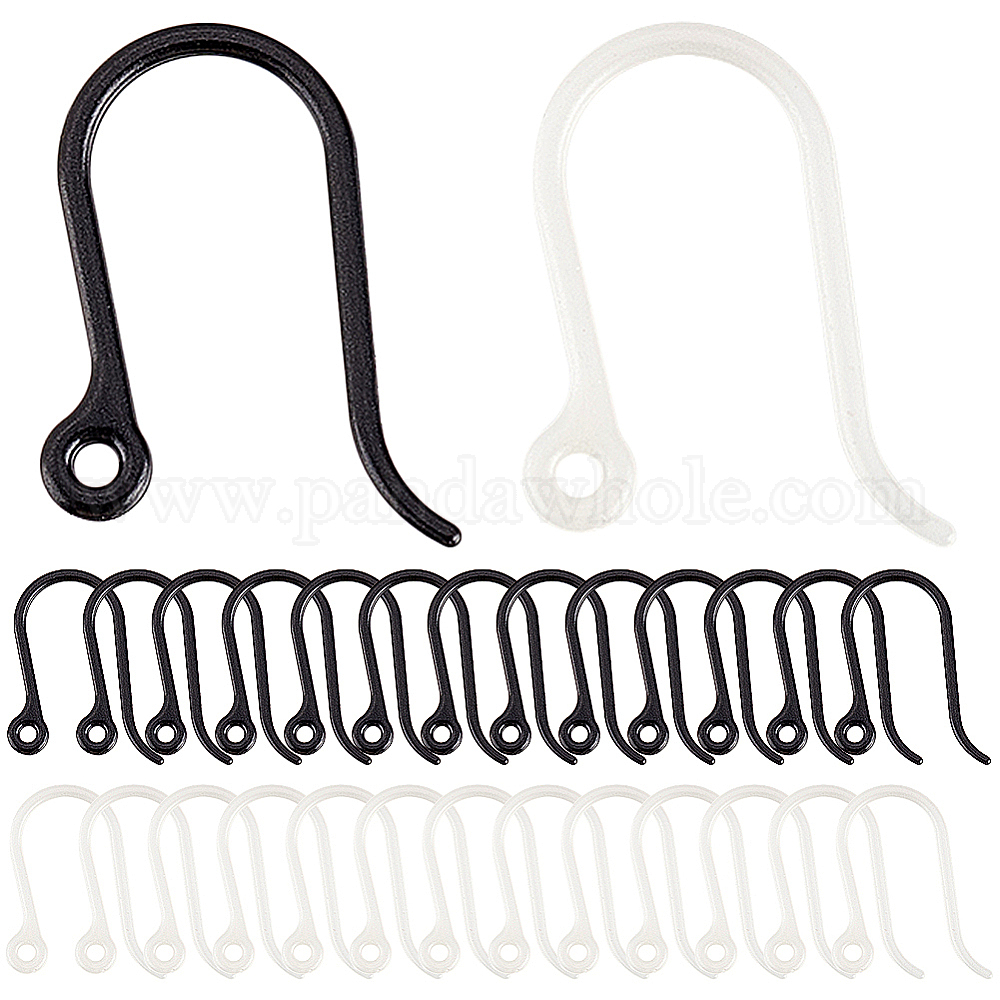• (52) Непрозрачная лаванда 200шт 2 цвета пластиковые крючки для сережек, провод уха, с горизонтальной петлей, черные и белые, 11x9x0.6 мм, 22 датчик, отверстие : 0.9 мм, 100 шт / цвет
