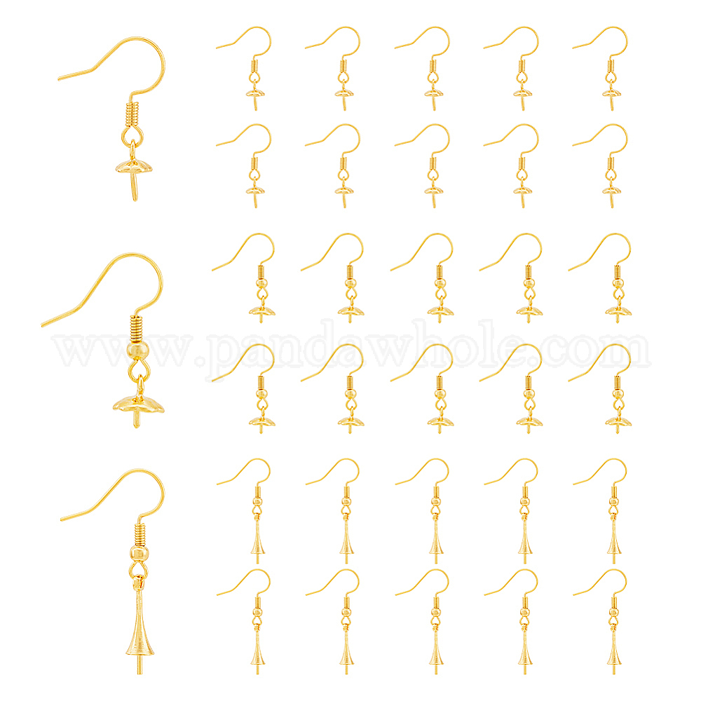 30шт 3 стиль стойка покрытие латунь крючки для сережек, за половину пробурено бисера, долговечный, без свинца и без кадмия