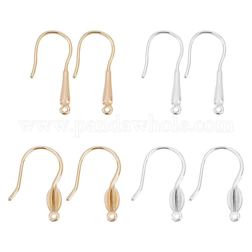 крючки для сережек из латуни: 20x15x3.5 мм, отверстие : 1 мм, штифты : 0.8 мм, 2 цветов, 2 пар / цвет, 4 пары;