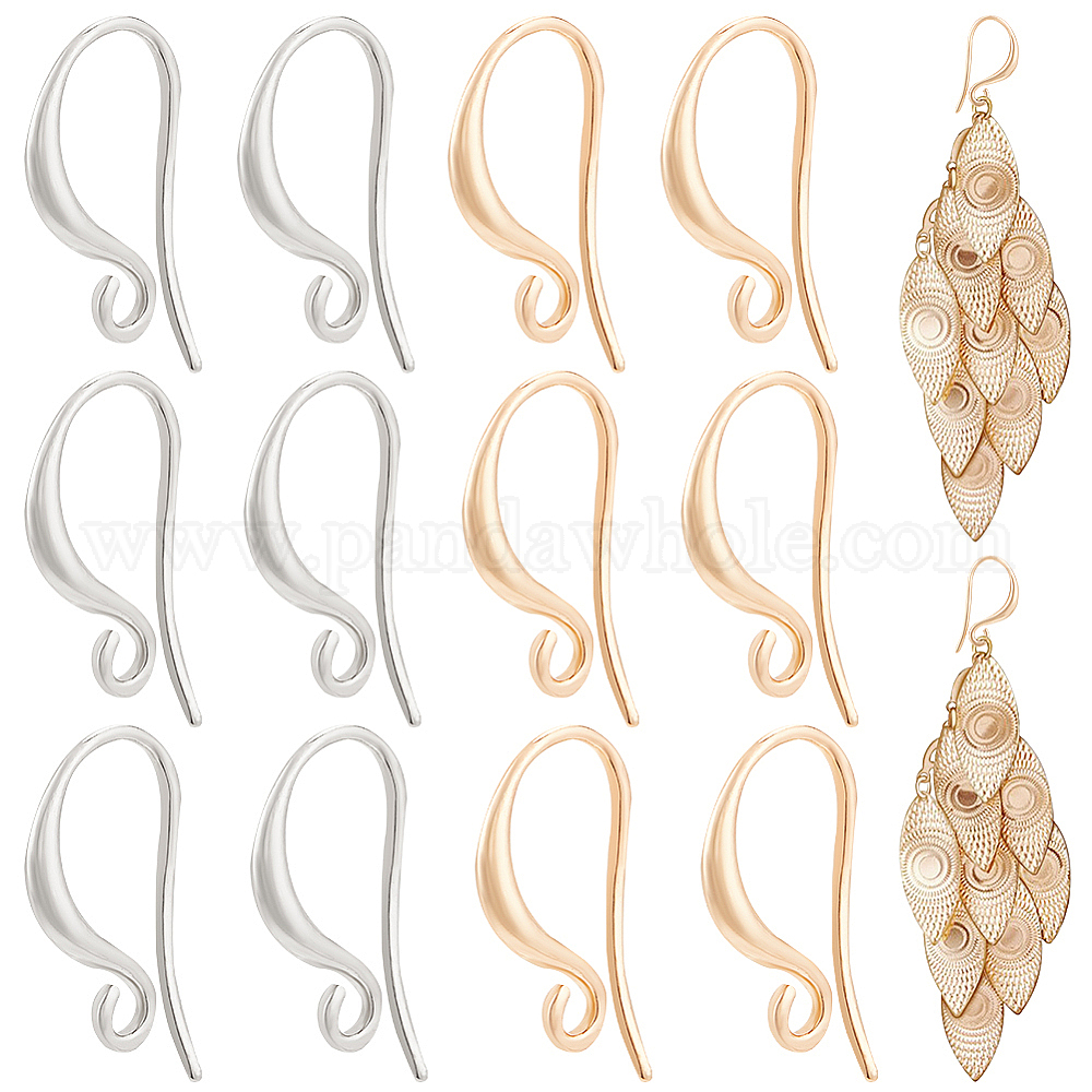 латунные крючки для серег: около 0.35 дюйма (9 мм) в ширину, 0.63 дюйм (16 мм) в длину, 0.06 дюйм (1.5 мм) толщиной, отверстие: 0.06 дюйм (1.5 мм) штифт: 0.03 дюйм (0.8 мм), 2 цветов, 24cps/цвет, 48 шт;