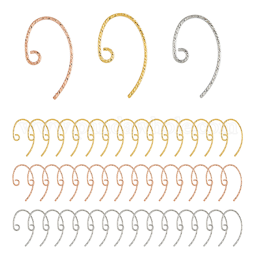90 шт. 3 цвета латунные крючки для сережек, с горизонтальными петлями