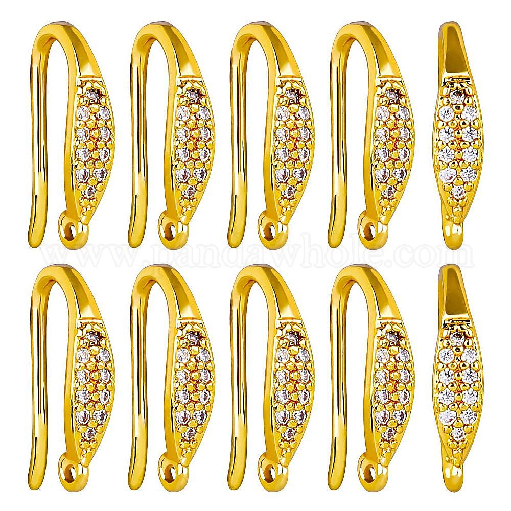10 пары латунных крючков для сережек с микропаве и прозрачным фианитом, провод уха, с петлями, лист