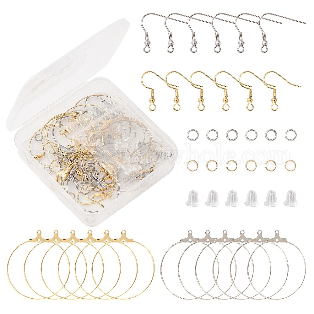40 шт. 4 стили 304 крючки для сережек из нержавеющей стали и фурнитура для сережек-колец, Проволока для ушей с открытыми кольцами 20 шт. и гайками для ушей 20 шт.
