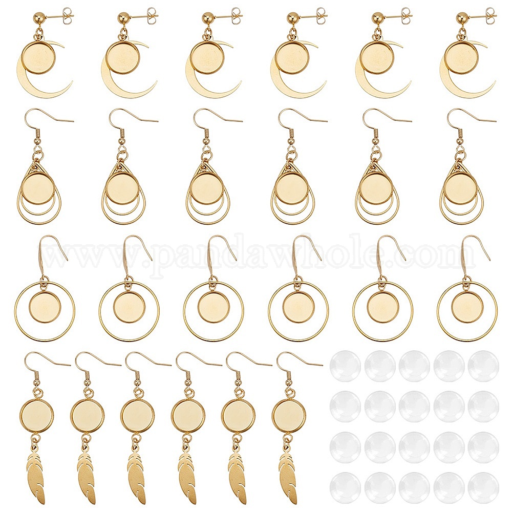 8 пары 4 стиль 304 крючки для сережек из нержавеющей стали, ушная проволока с круглыми лотками, слеза, кольцо, перо и луна