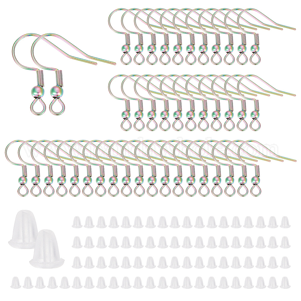 80шт. вакуумное покрытие PVD 201 крючки для сережек из нержавеющей стали, французские крючки с катушкой и шариком, с 80 пластиковыми ушными гайками