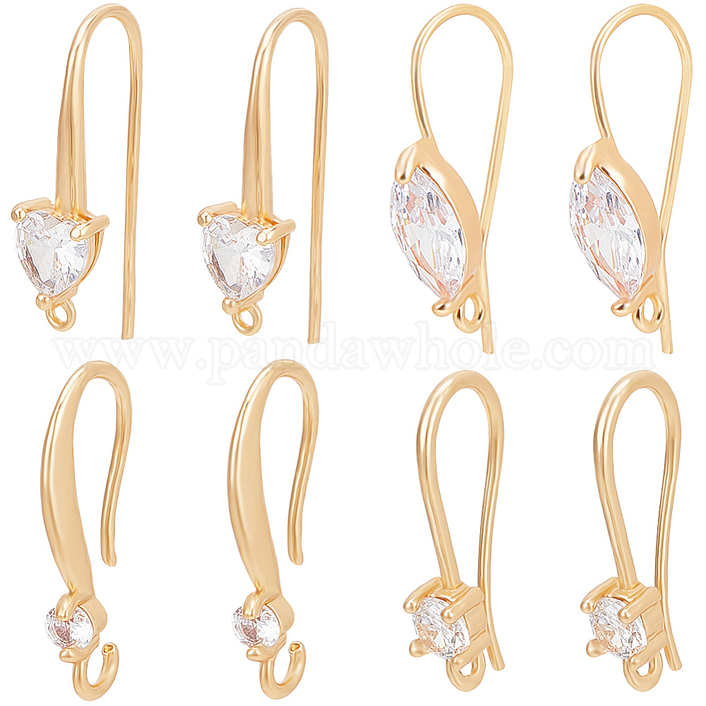 16шт 4 стиль латунные крючки для сережек, швенза с фианитами и горизонтальными петлями