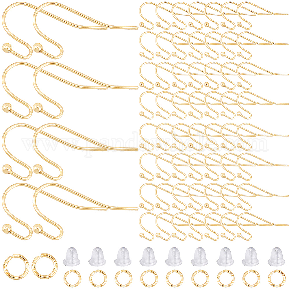 100 шт. 304 крючки для серег из нержавеющей стали, проволока для уха с круглым шариком, с 100 открытыми соединительными кольцами, 100 гайки ушные пластиковые