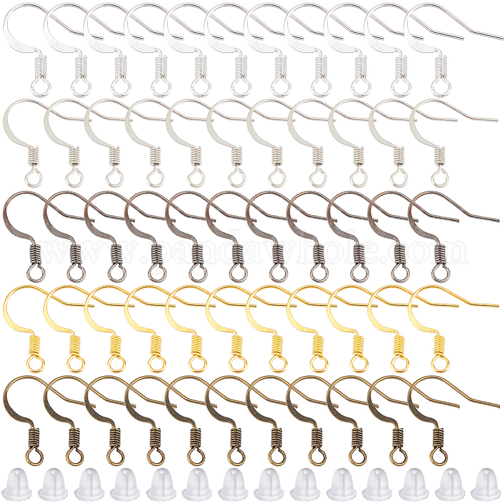 500шт 5 цвета латунь французские крючки для сережек, провод уха, с горизонтальной петлей и пластиковыми ушными гайками 500шт., без никеля (02Q9EX)