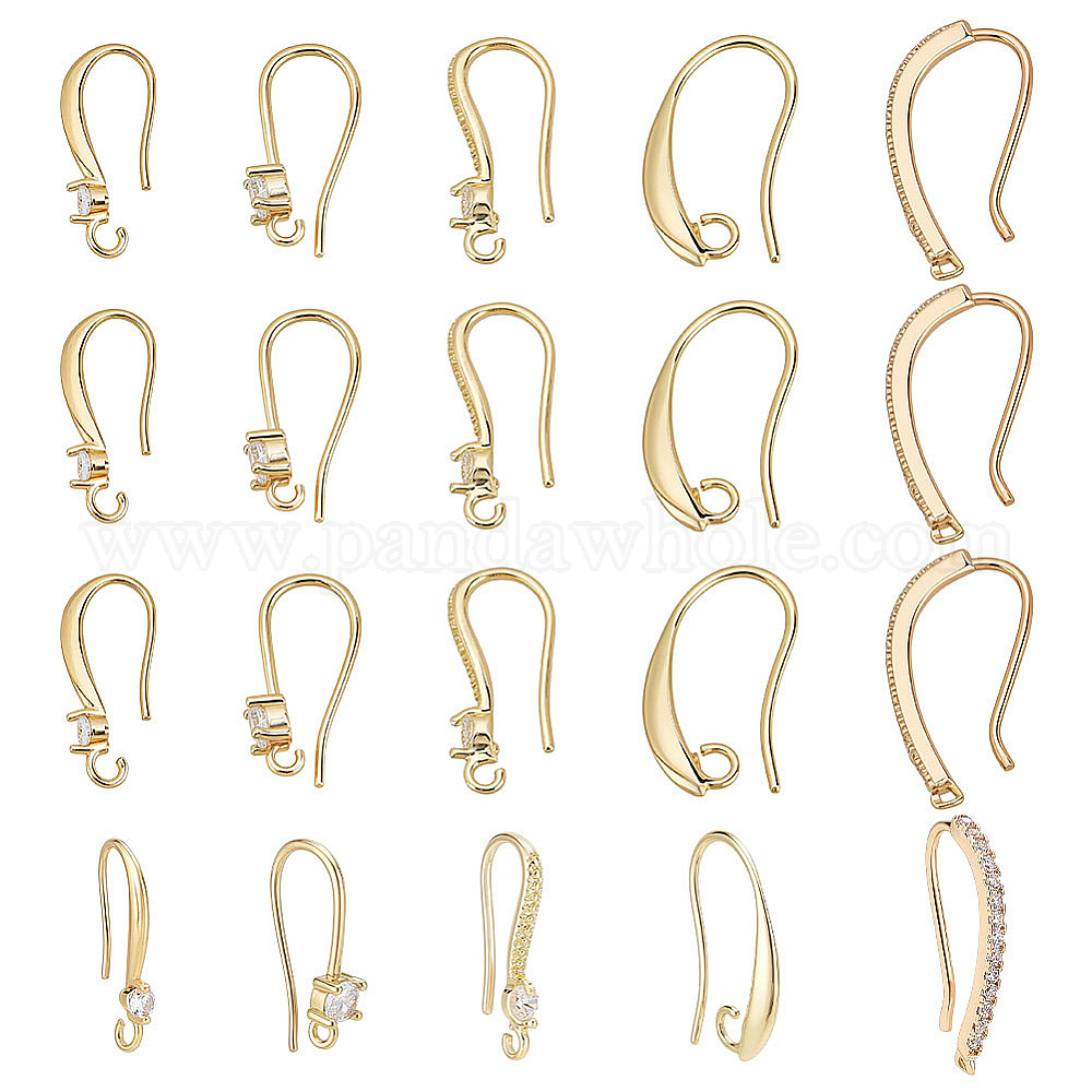 20шт. 5 стили латунные кубические циркониевые серьги крючки, с горизонтальной петлей, 20 гайки ушные пластиковые