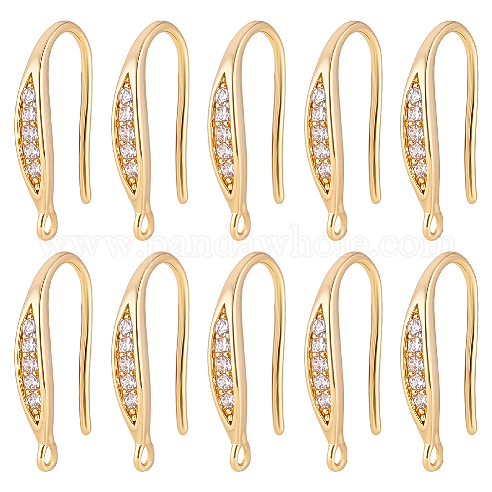 • Настоящее золото 18K 20 латунные крючки для серег из прозрачного кубического циркония с микропаве, без никеля , реальный 18 k позолоченный, 15x2.5 мм, отверстие : 1 мм, штифты : 0.7 мм