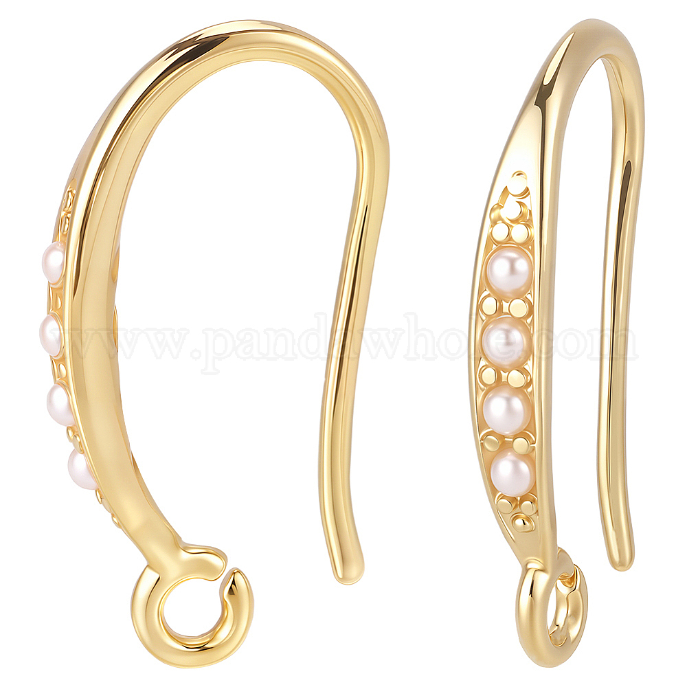 • Настоящее золото 18K 20 шт латунные серьги крючки, долговечный, без никеля , с ABS имитации жемчуга, реальный 18 k позолоченный, 17x10x2.5 мм, отверстие : 1.4 мм