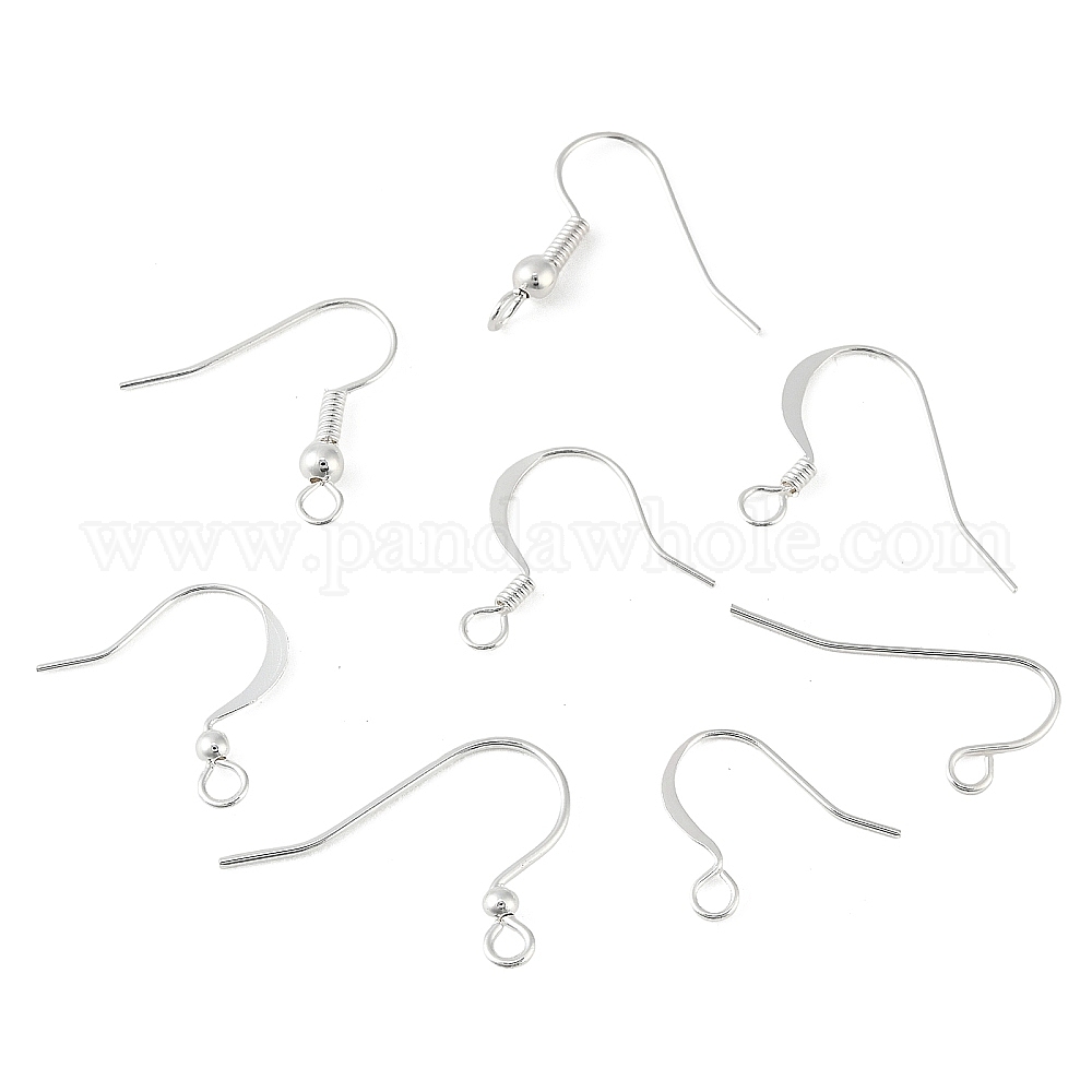 • Серебро Латунные крючки для сережек, без свинца, без кадмии и без никеля, французские крючки с катушкой и шариком, серебряные, 19.5 мм, отверстие : 1 мм, штифты : 1 мм