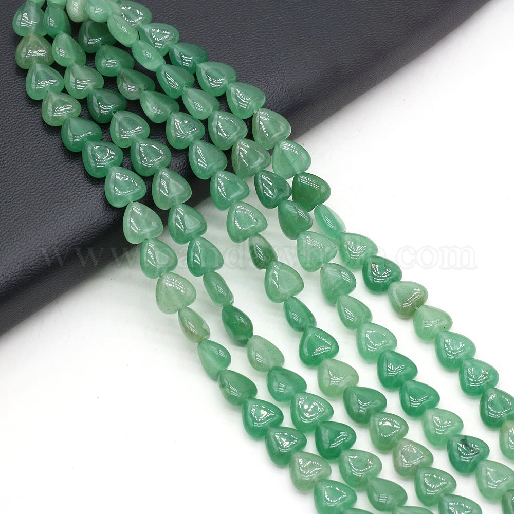• Зеленый Авантюрин Естественный зеленый авантюрин бисер нитей, сердце, 10x10 мм, около 38 шт / нитка