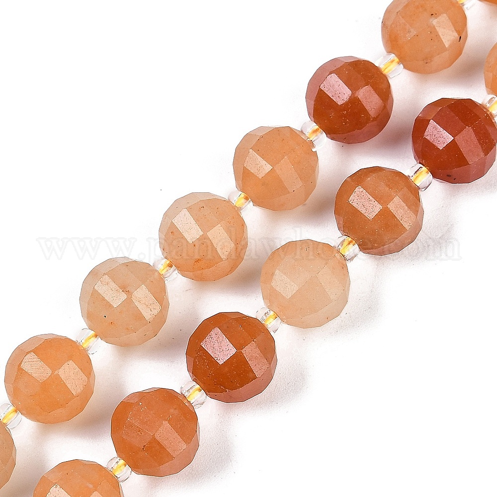 Натуральный красный авантюрин бисер нитей, граненые, фонарь, с бисером