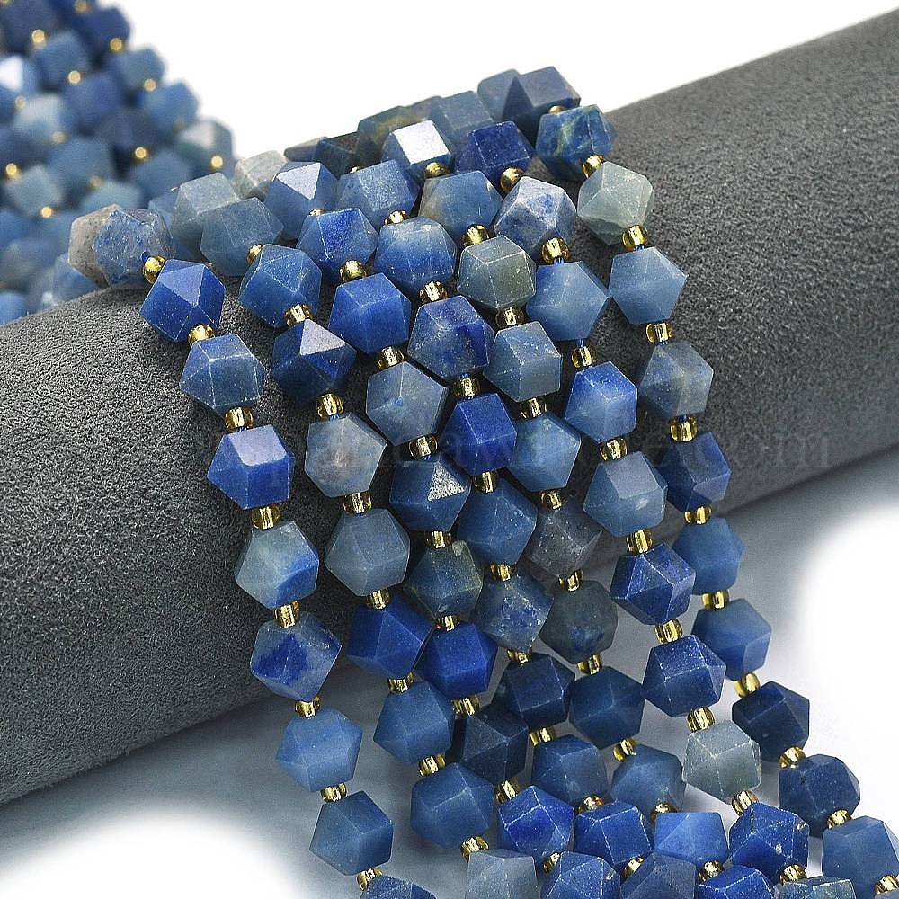 Нити бусин из натурального синего авантюрина (окрашенного и нагретого), восьмиугольник, граненые, с бисером