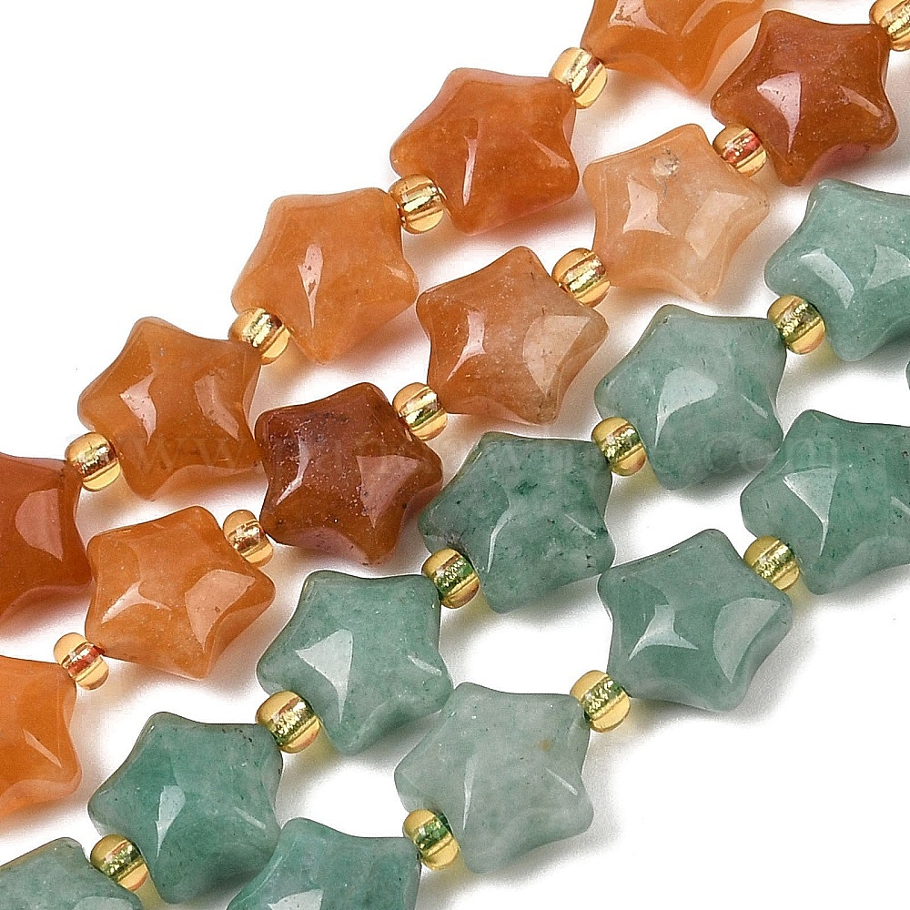 Естественно авантюрин бисер пряди, толстая звезда, с бисером