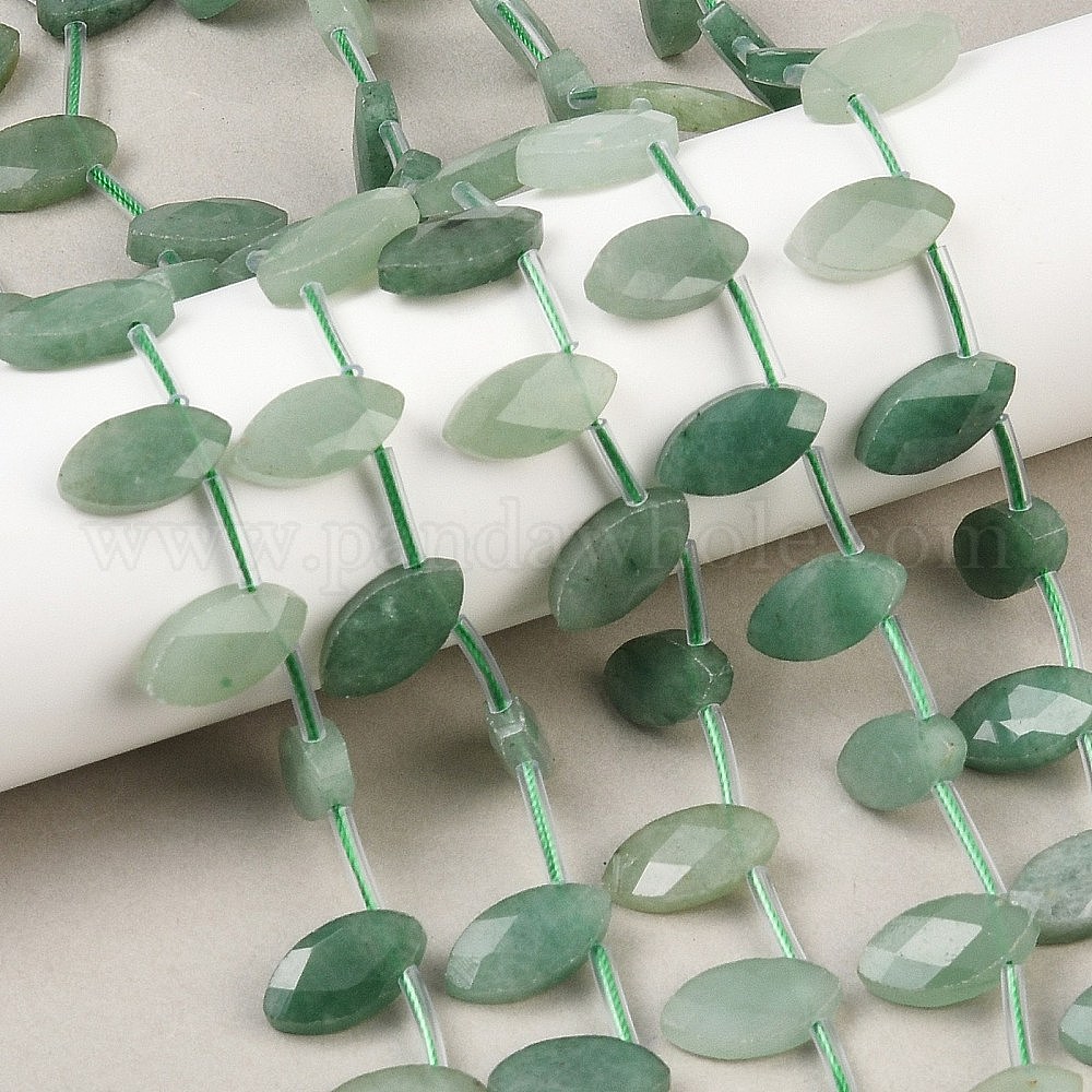 Естественный зеленый авантюрин бисер нитей, граненые, лошадиный глаз , Топ пробуренной, с пластиковыми трубчатыми бусинами