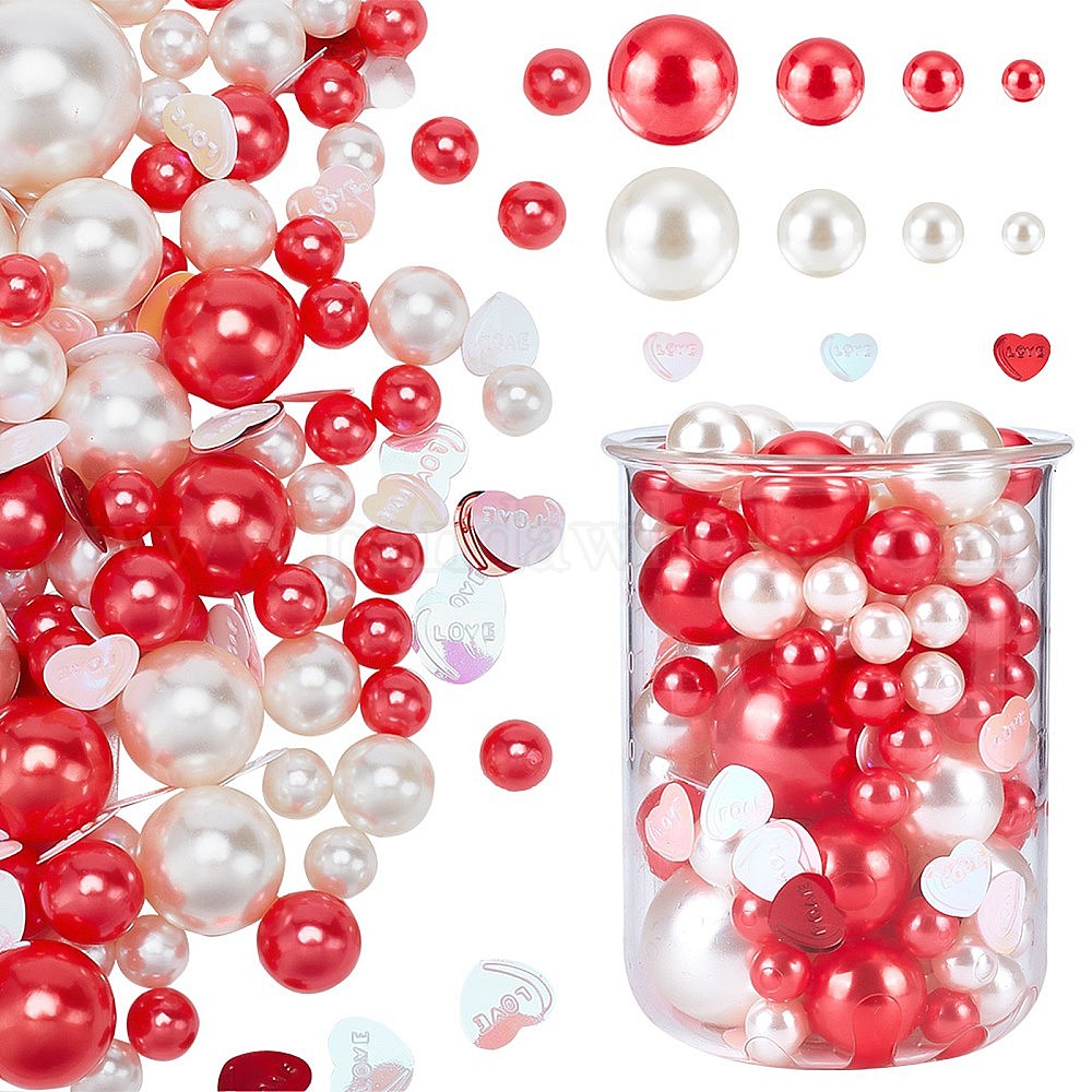 Наборы для наполнения ваз ко дню святого валентина, в комплекте круглые пластиковые бусины из геля с имитацией жемчуга, конфетти в форме сердца для изготовления