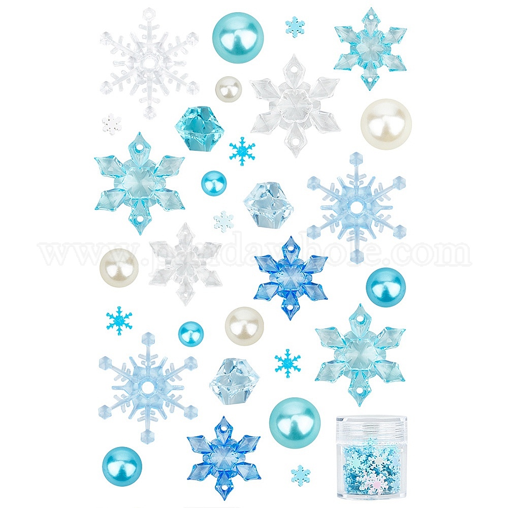 Наполнители для ваз с имитацией жемчуга на зимнюю тему, в том числе пластиковые круглые и бусины из полимерной глины в виде снежинок, акриловые соединительные шармы и чипсы, бусины