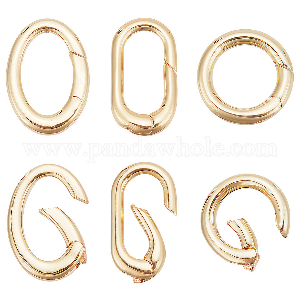 6 шт. 3 стили стойка покрытие латунь пружина затвор кольца, без кадмия, без никеля и без свинца, долговечный, уплотнительные кольца смешанной формы