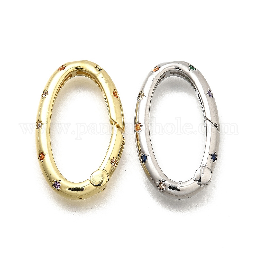 Латунные кольца из микро-паве циркония, долговечный, без свинца и без кадмия, стойки покрытие, овальные