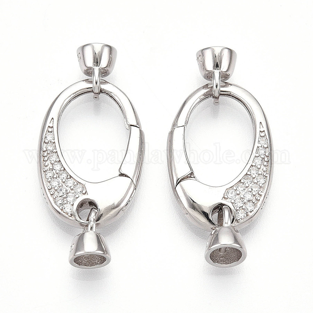 925 застежки-пружинки из стерлингового серебра с микропаве из прозрачных кубических цирконий, овал с печатью s925