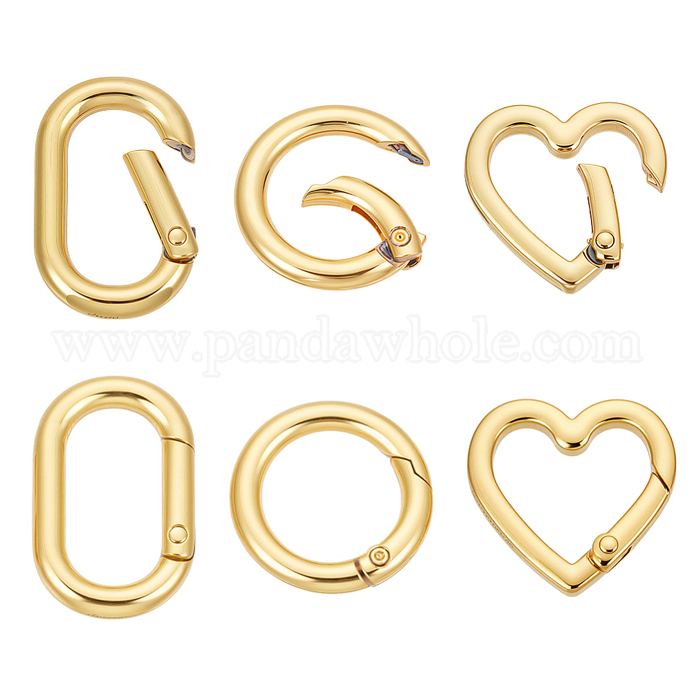 6шт 3 стили латунные пружинные затворные кольца, круглый и сердце и овал