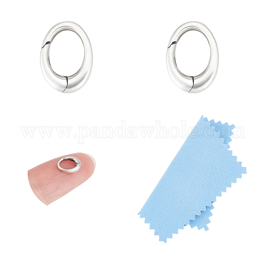 2 шт. 925 Кольца с пружинным затвором из стерлингового серебра, овальные, с замшевой тканью из поликарбоната квадратной серебряной полировальной салфеткой (034S42)
