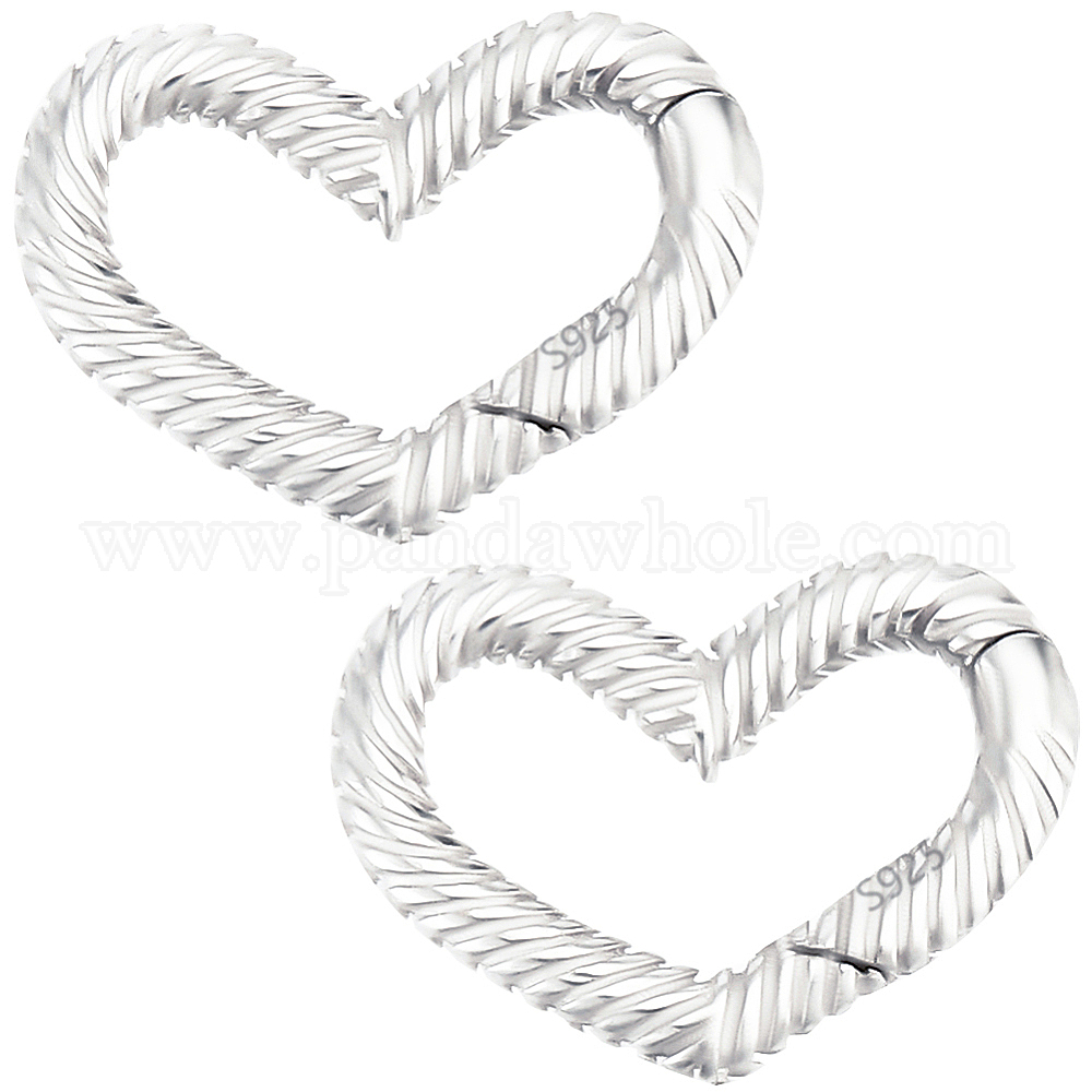 сердце 925 кольца с пружинным затвором из стерлингового серебра: 12x16x2мм, внутренний диаметр: 9x12 мм, 2шт.;