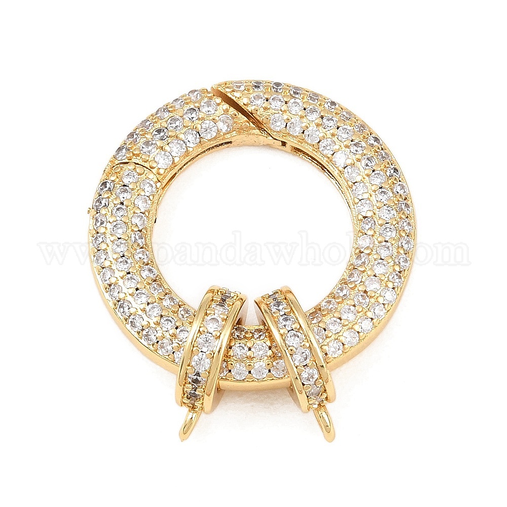 Латунное кольцо с микропаве из прозрачного кубического циркония, пружинные затворные кольца, с трубчатыми поручнями, долговечный, стойки покрытие, без свинца и без кадмия