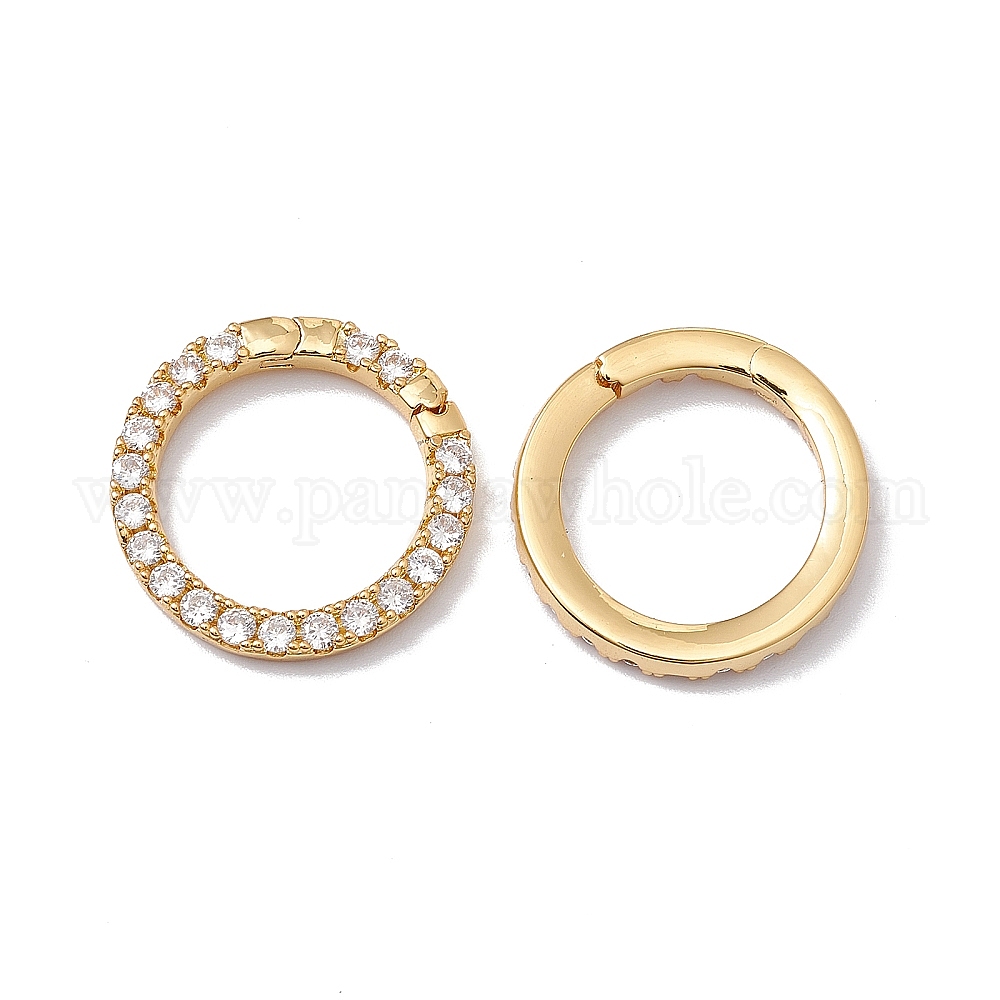 • Настоящее золото 18K Латунное покрытие стойки микро паве прозрачный кубический цирконий пружинное кольцо калитки, без кадмия, без никеля и без свинца, круглые, реальный 18 k позолоченный, 19x2.5 мм, 10 датчик