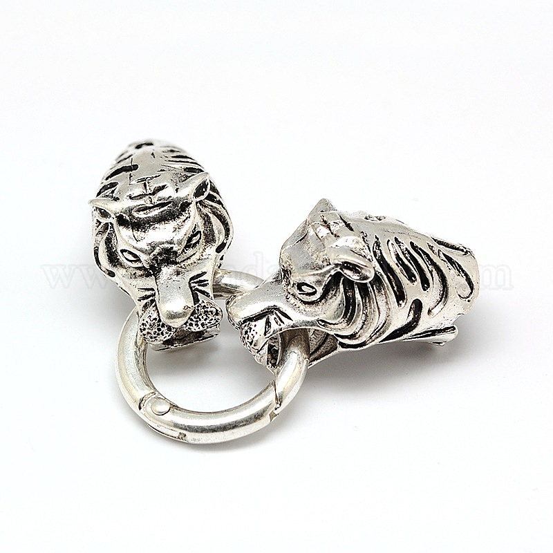 Тибетский стиль сплава животных тигровая голова весна кольца ворот, уплотнительные кольца с двумя концами шнура для изготовления браслета