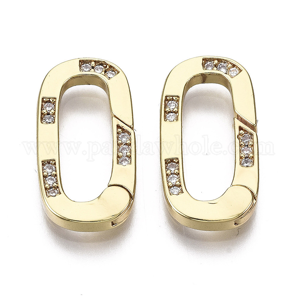 Латунный микро pave прозрачный кубический цирконий пружинные кольца, овальные, без никеля