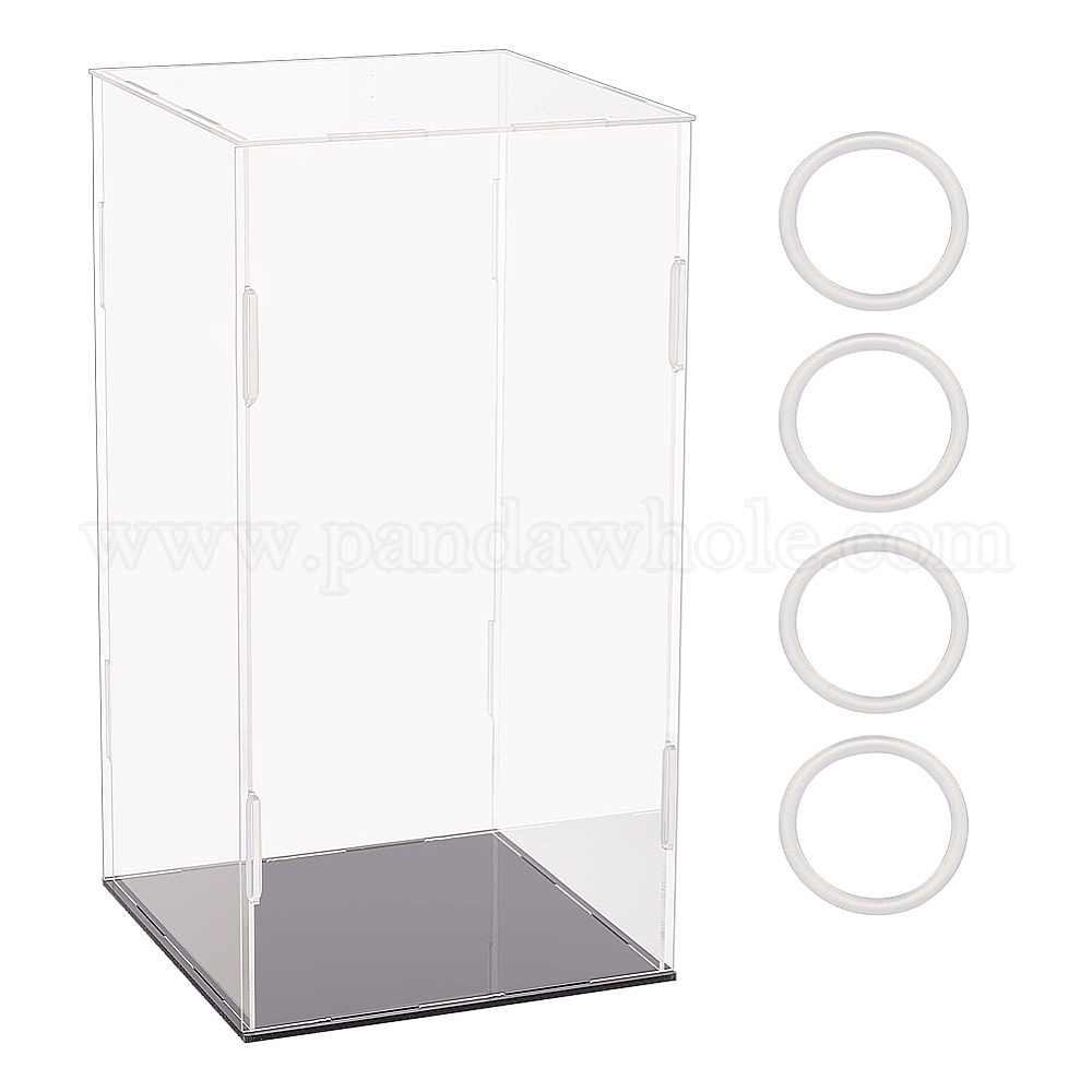 • Прозрачный Прямоугольные прозрачные акриловые коробки для демонстрации минифигурок с черным основанием, для моделей, строительные блоки, держатели для кукол, прозрачные, 16x16x30.5 см