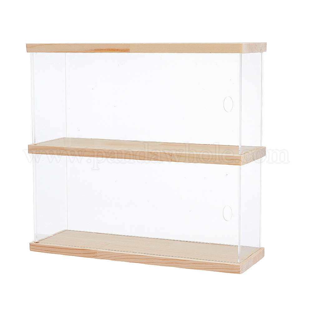 2-ярусная прозрачная акриловая витрина для минифигурок с деревянной основой, для моделей, строительные блоки, держатель для кукол, прямоугольные