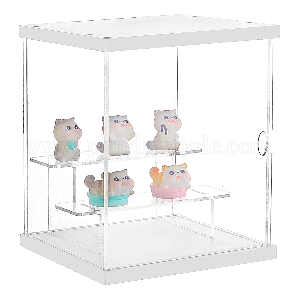 • Белый 3-ярусная прозрачная акриловая витрина для минифигурок, пылезащитный чехол для моделей, строительные блоки, держатель для кукол, прямоугольные, белые, готовый продукт: 15x14.5x19 см