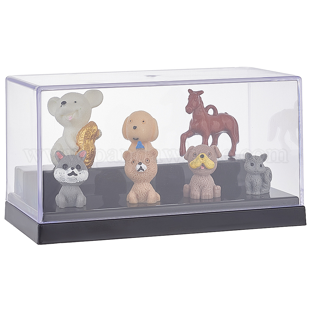 • Черный Прозрачные акриловые игрушки фигурки витрины коробки, пылезащитный витринный шкаф для минифигурок с деревянной основой, прямоугольные, чёрные, 14.9x8x8.1 см