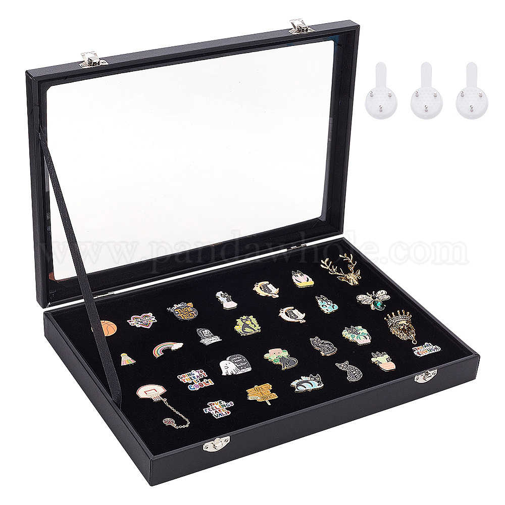• Черный Витрина для значков из дерева, коробка для бейджей с прозрачным окошком, прямоугольные, чёрные, 350x251x50 мм
