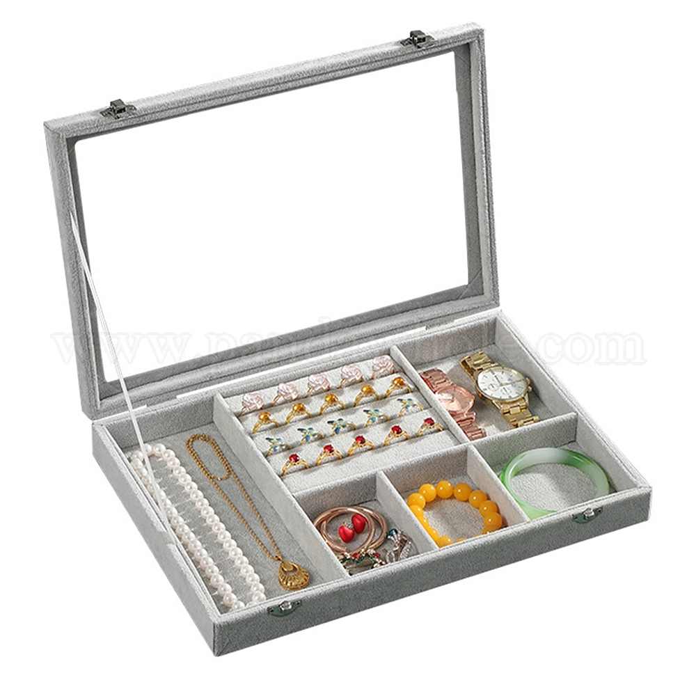 Прямоугольные бархатные витрины для ювелирных изделий с видимым окном, для браслетов, ожерелий, колец, часов, хранения